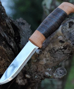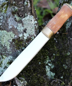Helle Spire Fixed Blade – Birch Wood (2.5″ Sandvik 12C27 Blunt Tip) Leather Sheath
