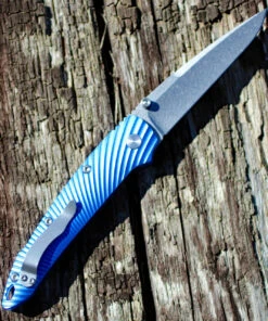 Kizer Cutlery Kizer KI4419A2 Silver, 3.50 in. CPM-S35VN Stonewash Plain Blade, Blue Aluminum Handle