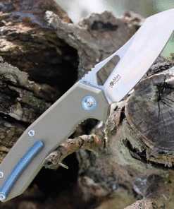 Kubey Knife Kubey Predator KB205A, 3.4″ AUS-10 Satin Blade, Gray 6AL4V Titanium Handles