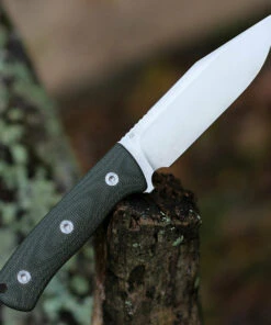 QSP Knife Bison Fixed Blade QS134-C, 4.5″ D2 Satin Plain Blade, Green Linen Miarta Handle