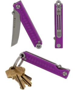 StatGear Pocket Samurai Folding Knife STAT105, 2.1″ 44OC Satin Plain Blade, Purple Aluminum Handle