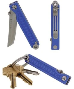 StatGear Pocket Samurai Folding Knife STAT107, 2.1″ 44OC Satin Plain Blade, Blue Aluminum Handle