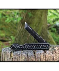 StatGear Pocket Samurai Folding Knife STAT102, 2.1″ 44OC Satin Plain Blade, Black Aluminum Handle