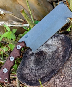 TOPS OP7-01 Operator 7, 7.25″ 1075 Carbon Steel Acid Rain Blade, Micarta/Black G10 Handle