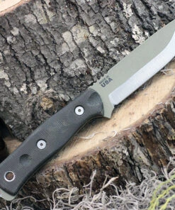 TOPS BROSTAN B.O.B. Fieldcraft, 4.75″ 1095 Plain Blade, Green Canvas Micarta Handle-Kydex Sheath