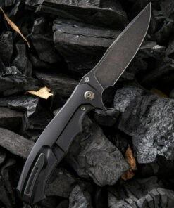 We Knife Co. WE Knife Elementum Frame Lock – Blk Ti (3″ Hakkapella Damasteel) WE18062X-DS1