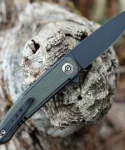 We Knife Co. WE Knife Smooth Sentinel – Blk Ti/Green Micarta (3″ CPM 20CV Blk) WE20043-4