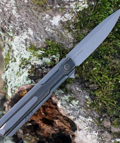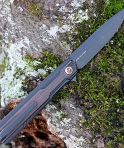 WE Knife Co. Peer, 2015E, 3.5″ CPM 20CV Gray Stonewashed Blade, Black Hand Rubbed Brass Handle