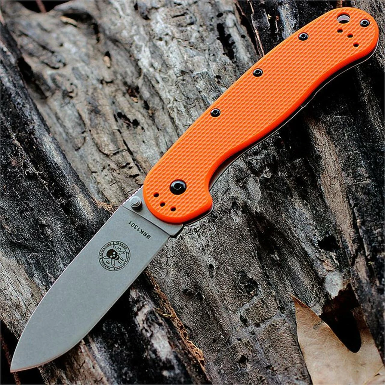 BRK Avispa Folder, Orange Nylon handles,Stonewash AUS-8 Blade, Plain Edge, Design by Esee Knives