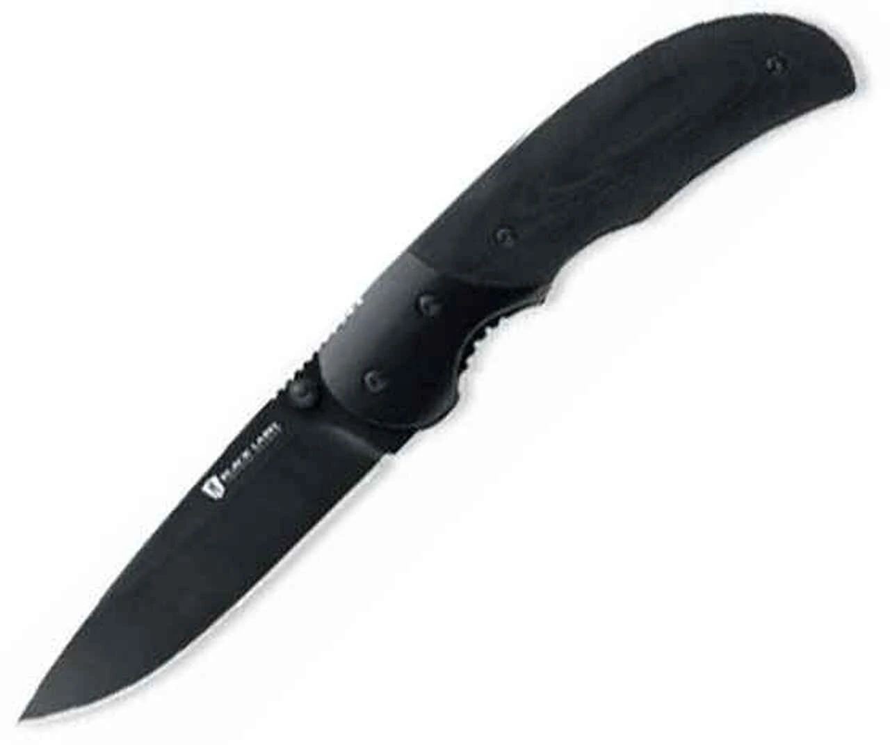 Features a 3.13 in. black 440 stainless steel blade, G-10 handle, liner lock and a 4 way adjustable pocket clip.