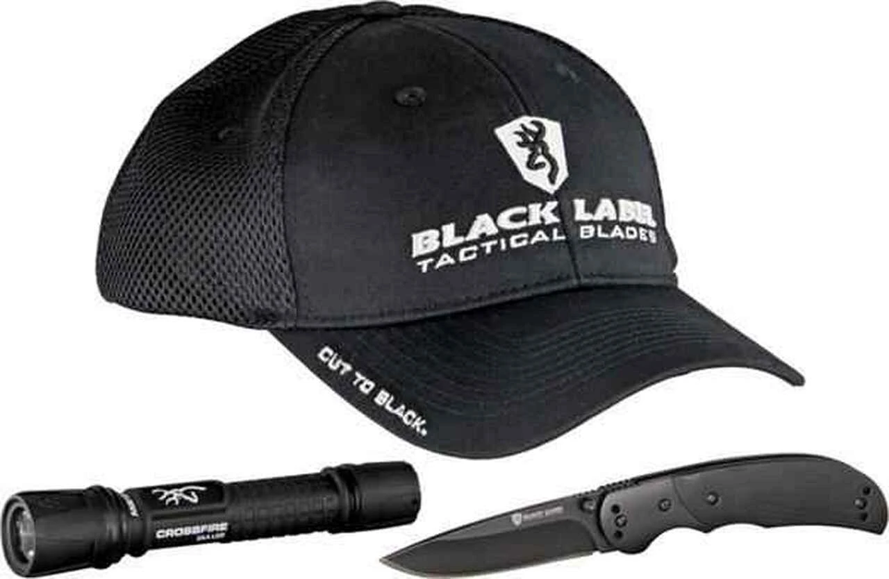 Browning Cut to Black Combo, Knife, Flashlight, Hat