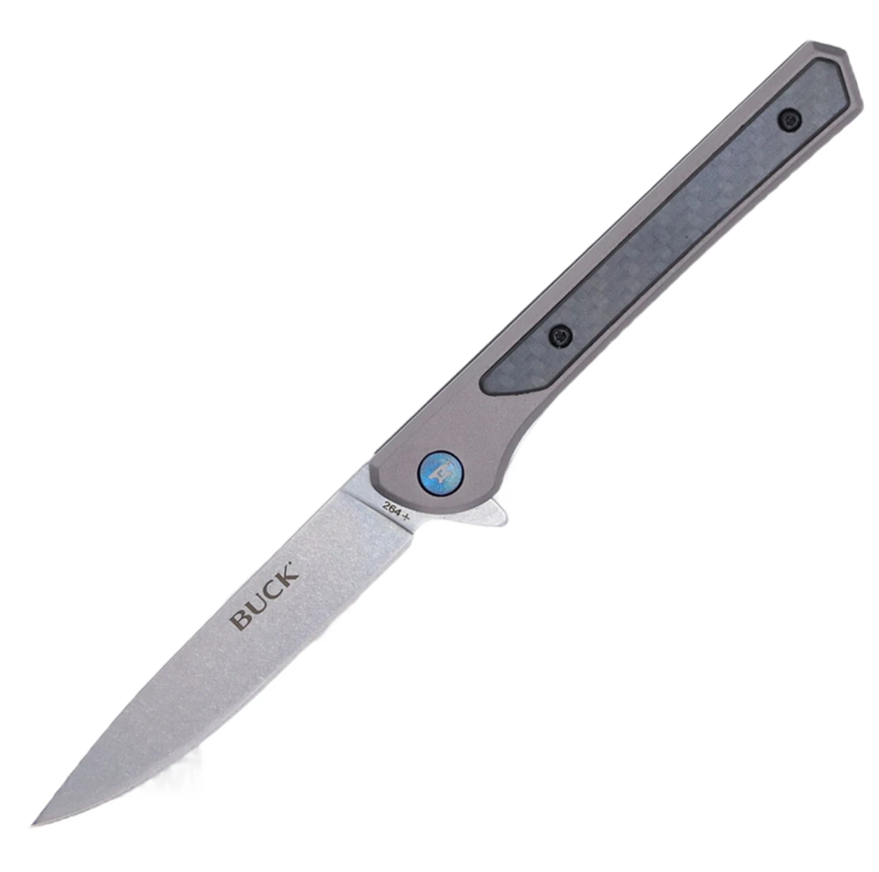 Buck Knives 0264 Cavalier Folding Knife – 3.6″ 7Cr17 Stonewashed Blade, Gray Aluminum Handle with Carbon Fiber Inlay