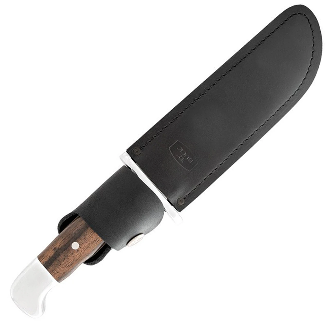 With roots dating back to the 1960’s, the 124 is a highly revered Buck classic. As part of the 2021 Legacy Collection, this 124 is crafted with Crelicam™ genuine ebony handles. The rich woodgrains found in natural ebony make each handle unique. The famous straight back bowie blade is 420HC steel, while the guard and pommel are aluminum. Includes a black leather sheath. This 124 Frontiersman bowie knife will only be available during 2021.