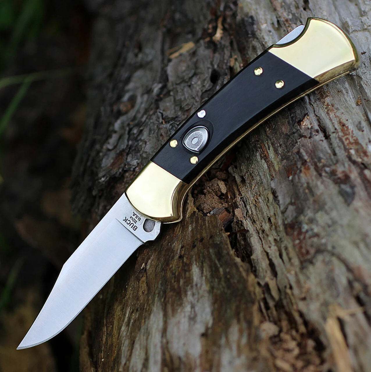 Buck Auto 112BRSA, 3″ Satin 420HC SS Plain Blade, Macassar Ebony Dymondwood Handle