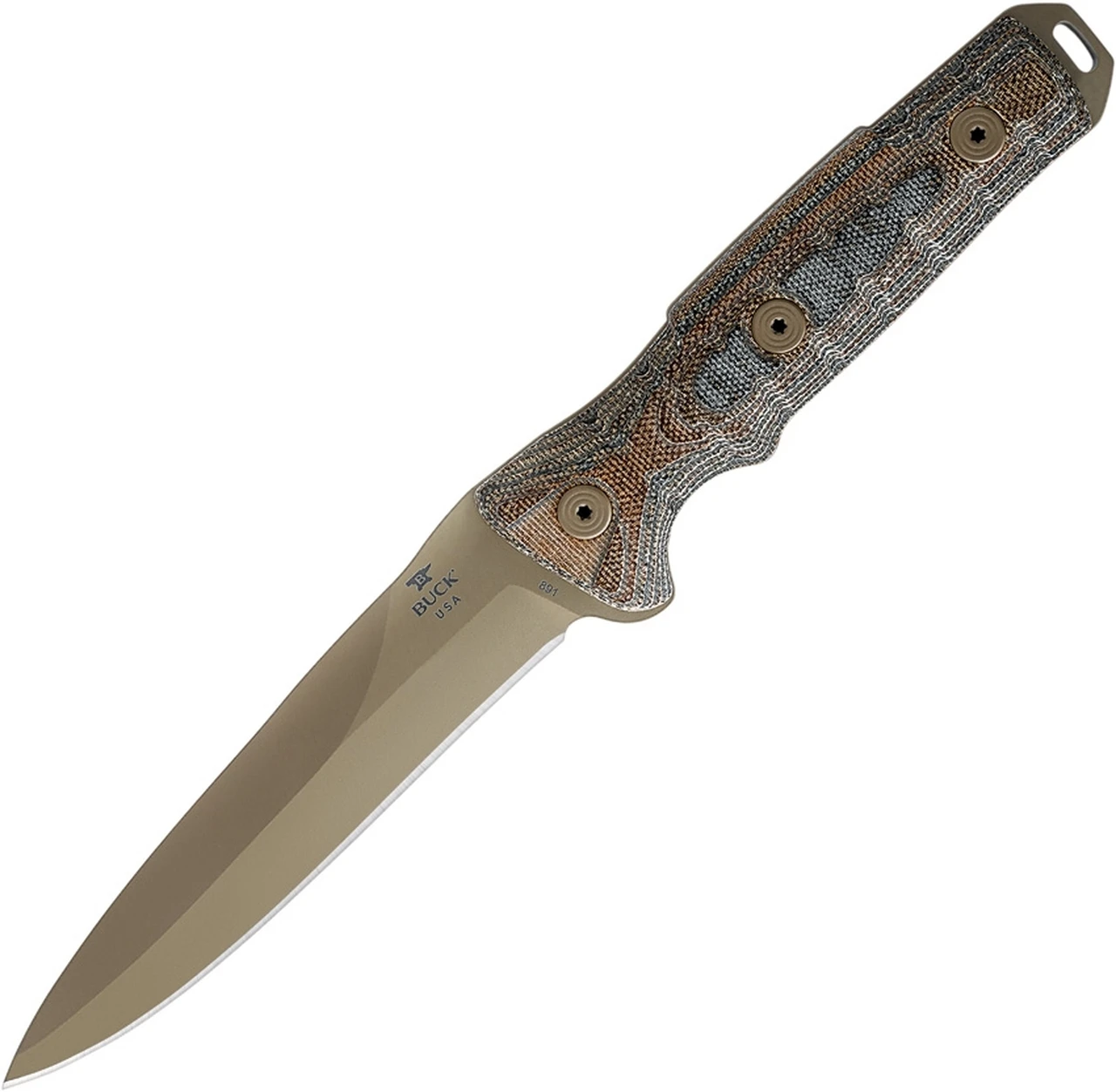Buck GCK Spear Point 5.5″ Coyote Tan Finish 5160 Carbon Steel Blade, Tri-Color Canvas Micarta Handle