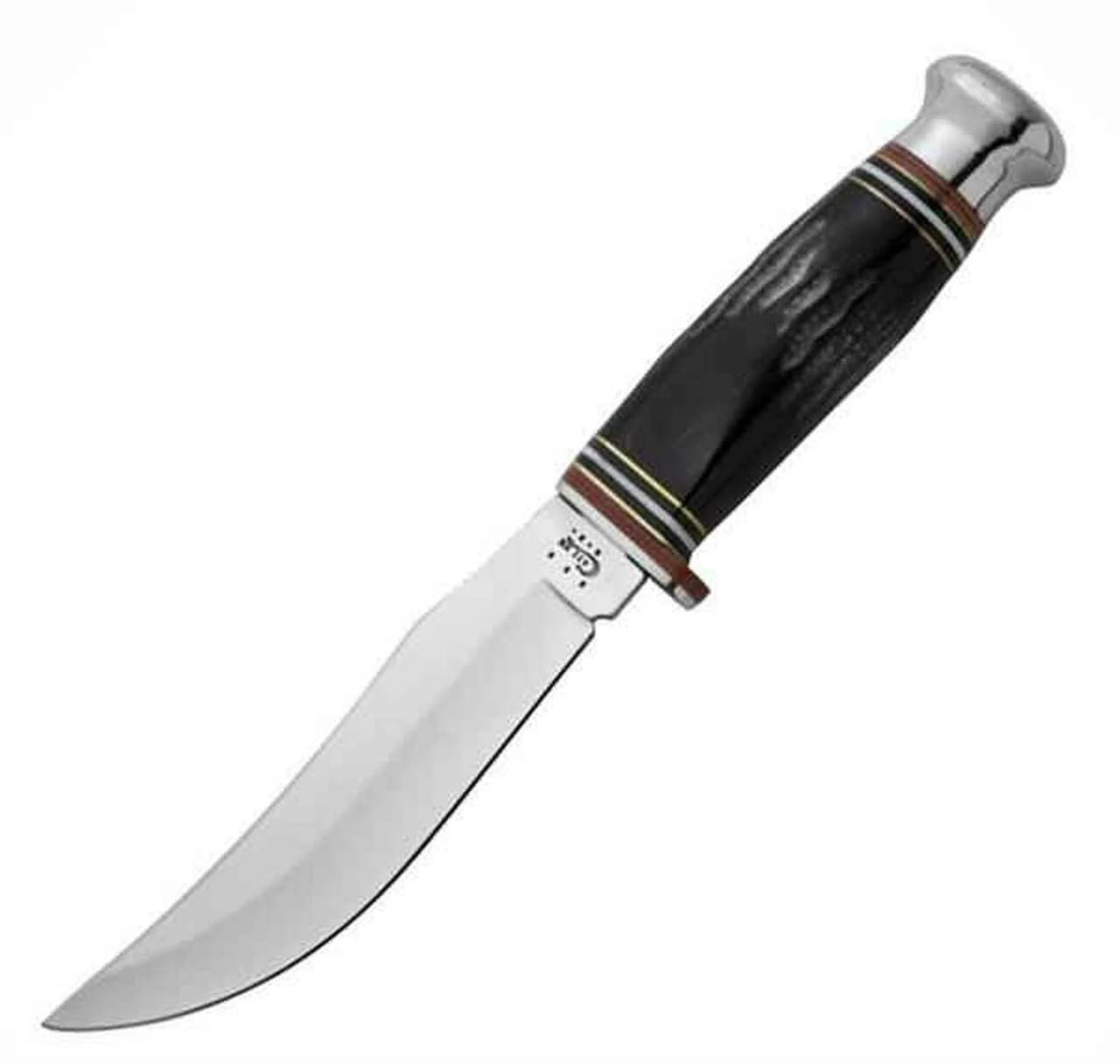 Case brings rugged Buffalo horn to your outdoor adventures with their newest fixed blade hunters. Each features natural black, jigged Buffalo horn grips, fiber and brass spacers, stainless steel blades and aluminum end caps. A genuine black leather belt sheath is included.