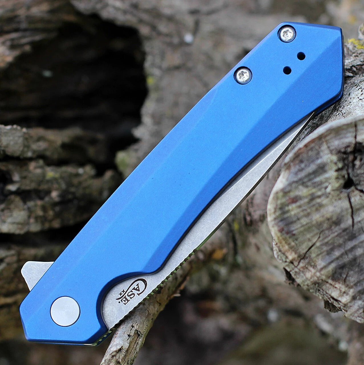 Case Kinzua Frame Lock Knife (64663) – 3.4″ S35VN Stonewashed Tanto Blade, Blue Anodized Aluminum Handle