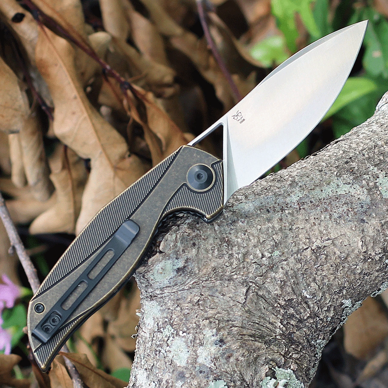 This model of the CIVIVI Anthropos comes with a satin 154CM steel blade. The handle is comprised of black brass.