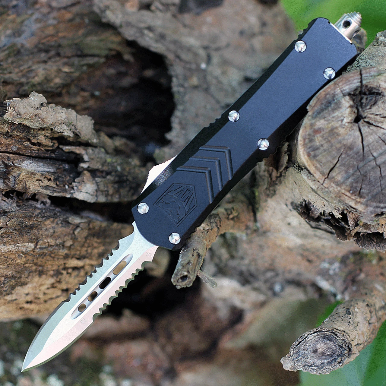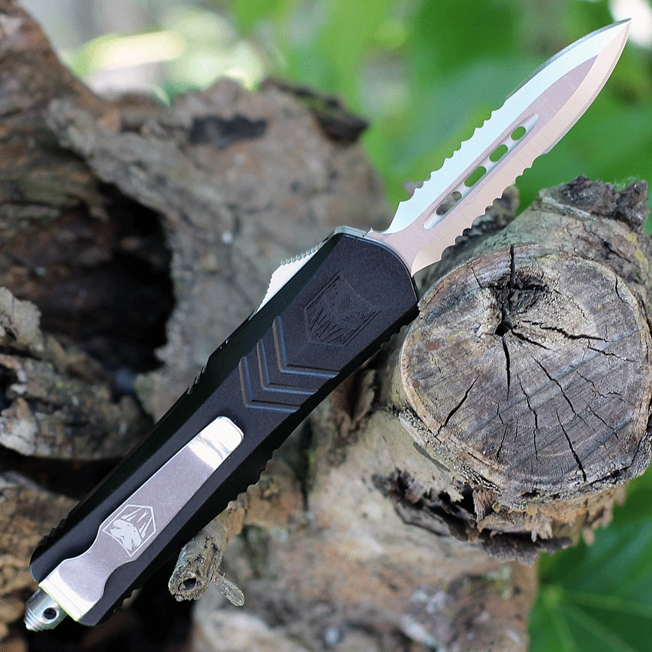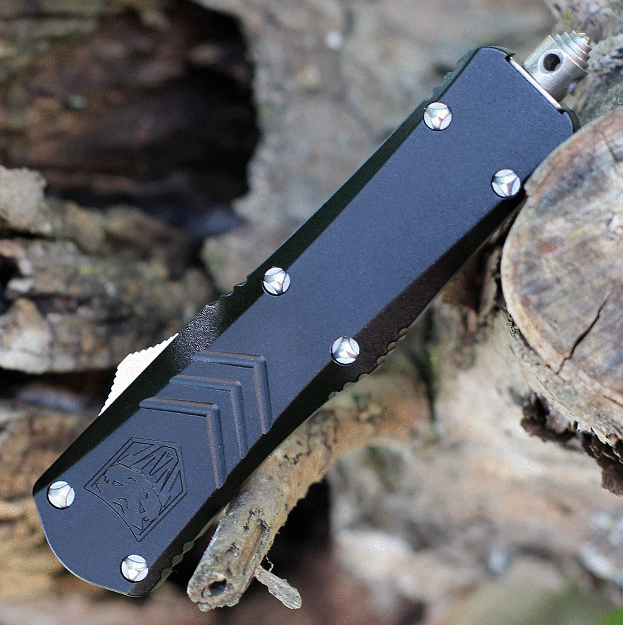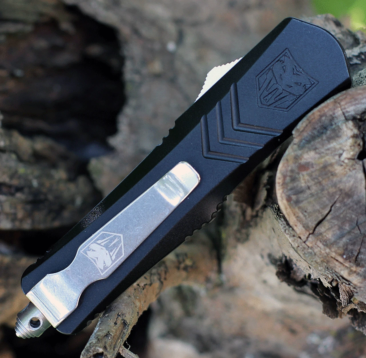 This CNC Machined OTF knife is very sleek and fits nicely in your pocket. The handle is expertly engineered from Aviation Aluminum and features a D2 Steel blade. The knife is ambidextrous as the pocket clip can be switched to either side of the handle depending on your preference