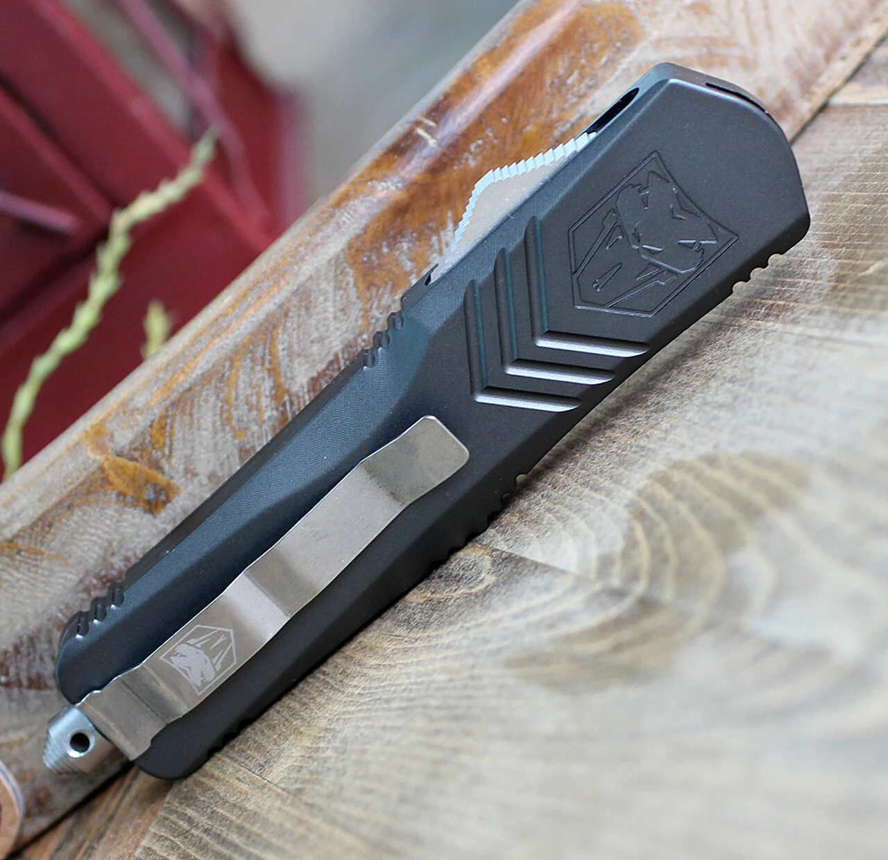 This CNC Machined OTF knife is very sleek and fits nicely in your pocket. The handle is expertly engineered from Aviation Aluminum and features a D2 Steel blade. The knife is ambidextrous as the pocket clip can be switched to either side of the handle depending on your preference