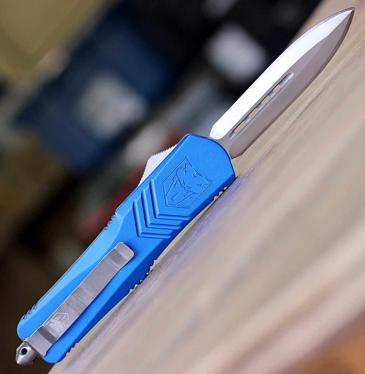This CNC Machined OTF knife is very sleek and fits nicely in your pocket. The handle is expertly engineered from Aviation Aluminum and features a D2 Steel blade. The knife is ambidextrous as the pocket clip can be switched to either side of the handle depending on your preference