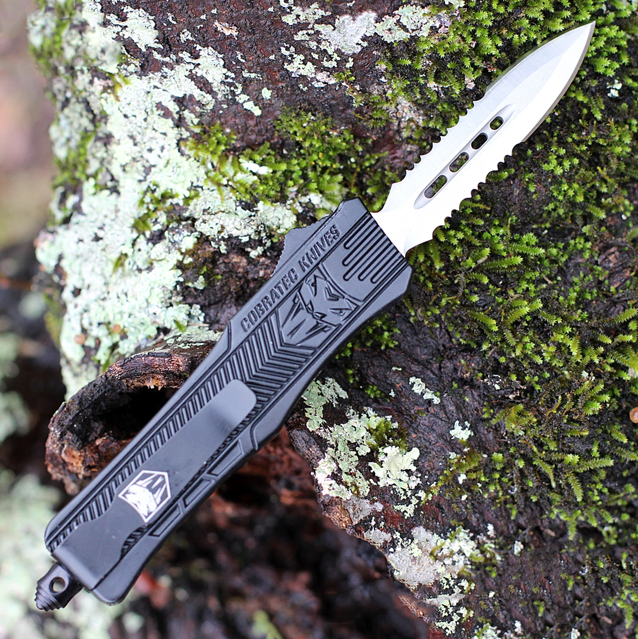 CobraTec Knives SBCTK-1SDAG2SS Small CTK-1 Black, 2.75″ D2 Steel 2 Side Partially Serrated Dagger Blade, Black Aluminum Handle