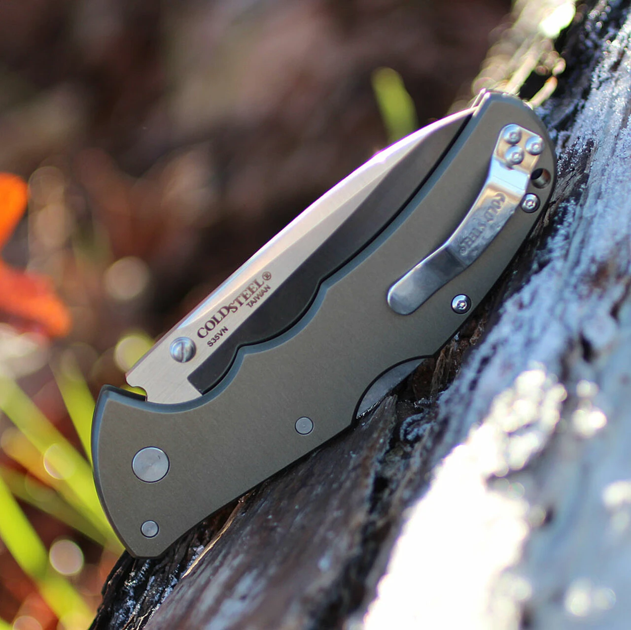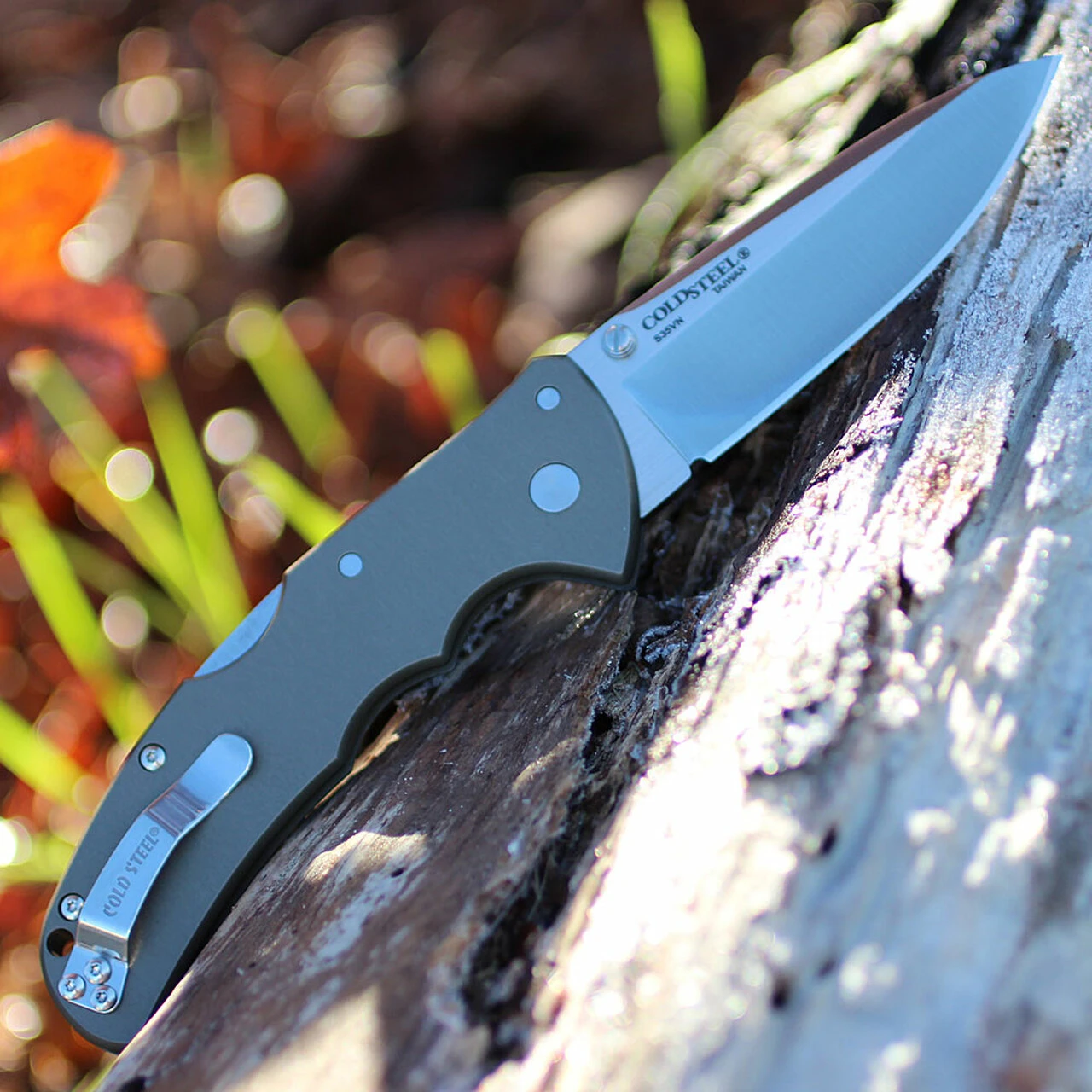When developing the Cold Steel Code 4, our aim was to create an ultra-thin, ultra-light, highly functional utility knife that is a breeze to carry. There is great comfort to be gleaned from knowing you are carrying a good knife, and many of our friends in Law Enforcement talk about how they’re always looking for that one reliable, lightweight blade that can become a permanent part of their everyday load out.We believe that our Code 4 is destined to become that knife! It won’t weigh down your uniform or provide unnecessary bulk. It’s a pleasure to carry – so it’s always there when you need it! Available in a variety of blade configurations, with ambidextrous pocket clips and thumb studs, each Code 4 features sturdy, hard-anodized gun metal grey 6061 Aluminum handles, our world-renowned Tri-Ad locking mechanism, and high satin polished, razor sharp American S35VN blades.