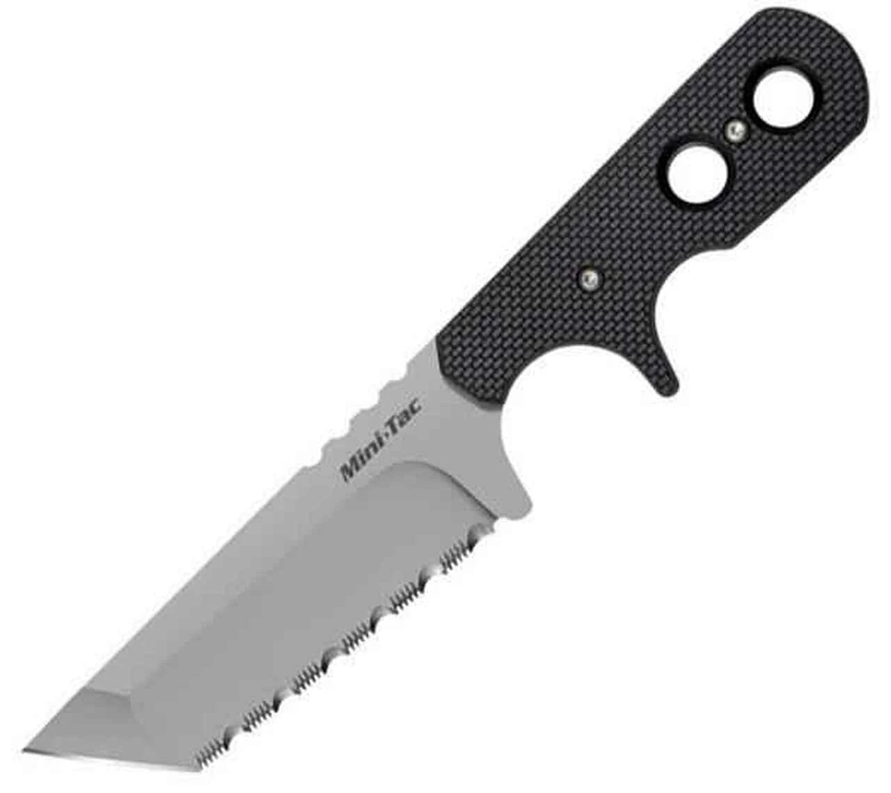 Cold Steel CS49HTFS Mini Tac, 3.75″ AUS 8A SS Serrated Blade, Tanto Point, Black G-10 Handle, Secure-Ex Neck Sheath