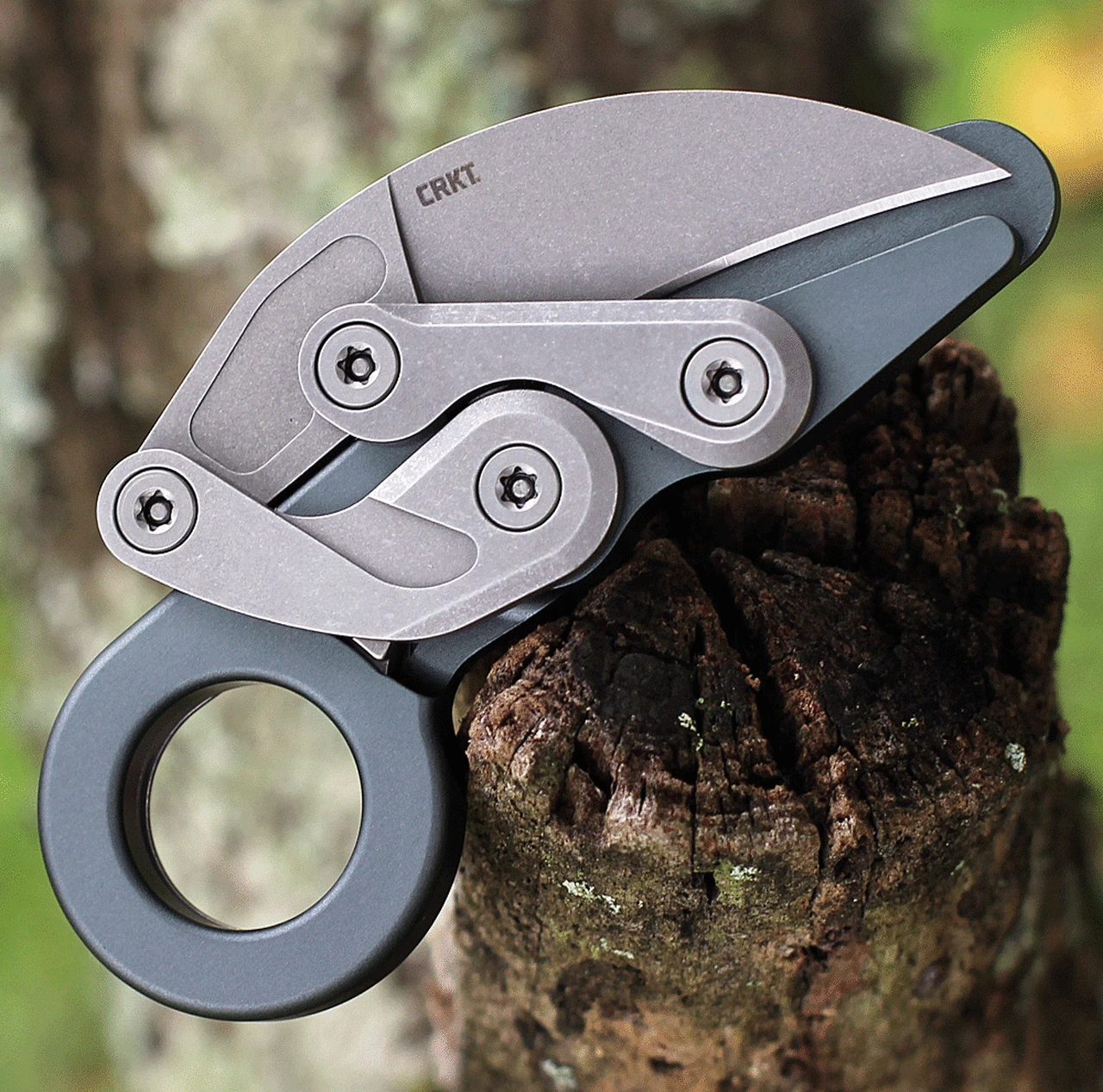 CRKT Compact Provoke Kinematic 4045, 2.26″ D2 Tool Steel Stonewashed Hawkbill Blade, Gray 6061 Aluminum