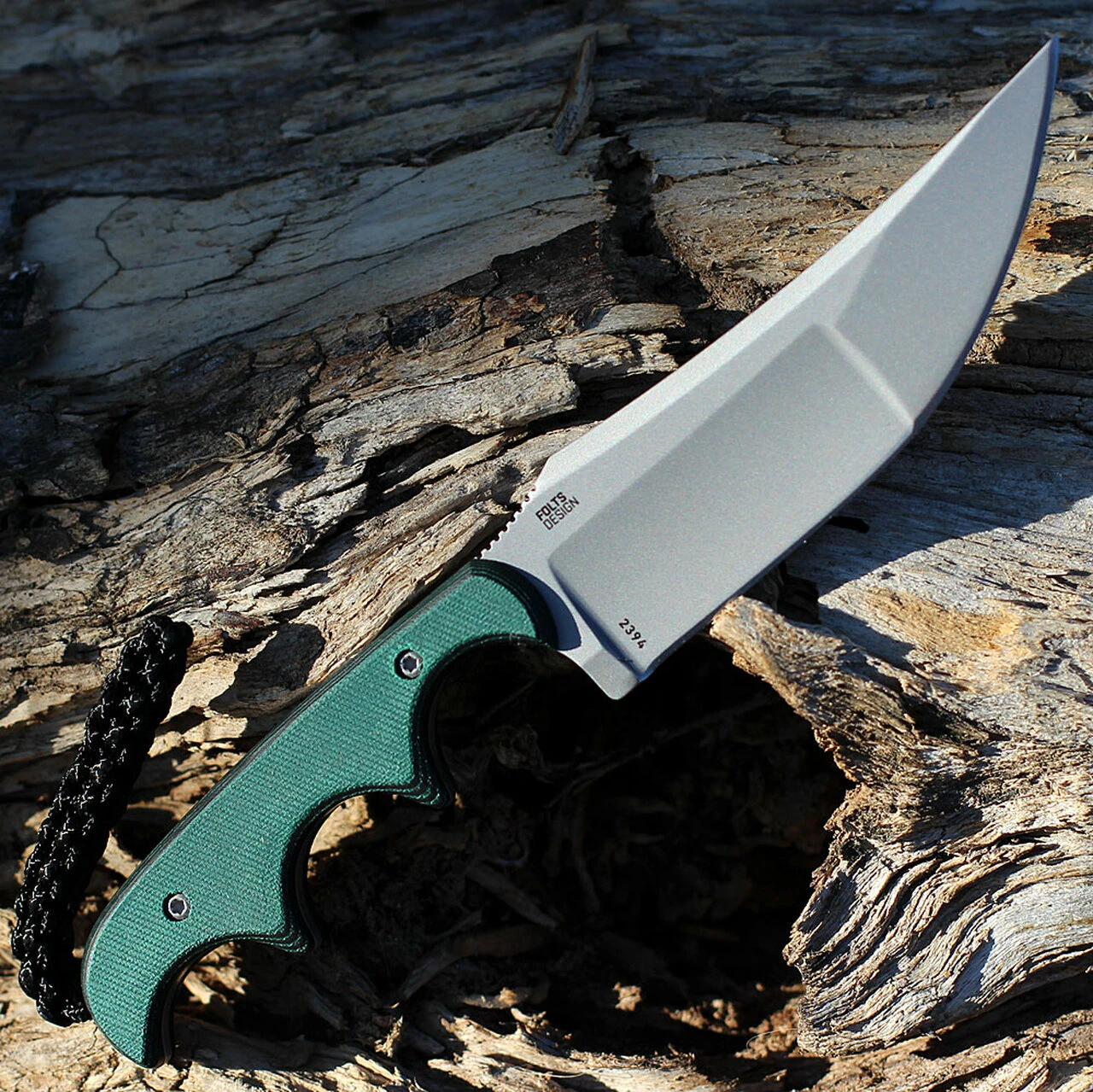 CRKT Minimalist Katana (2394) – 3.56″ 8Cr13MoV Bead Blast Trailing Point Blade, Green Polymer Handle W/ Zytel Sheath