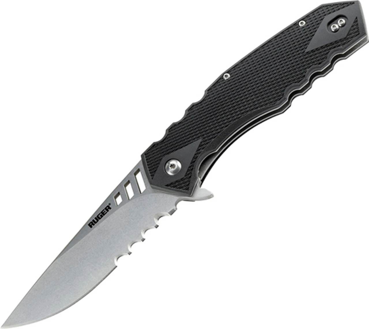 CRKT Ruger 1702 Follow-Through, 3.75 in. Drop Point Combo Blade, Matthew Lerch Design Linerlock Folding Knife