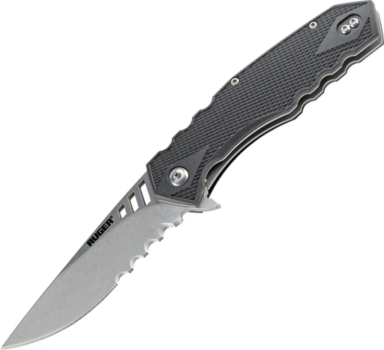 CRKT Ruger 1704 Follow-Through Compact, 3.25 in. Drop Point Combo Blade, Matthew Lerch Design Linerlock Folding Knife