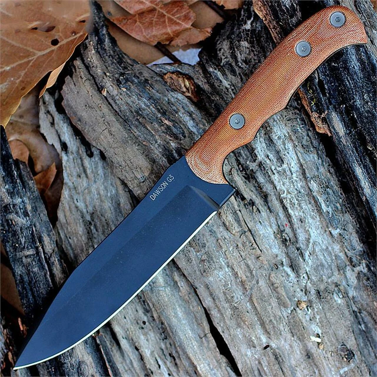 Dawson Knives, Outdoorsman 6″ Camp Knife, Black Cerakote Finish, Tan Micarta Handle