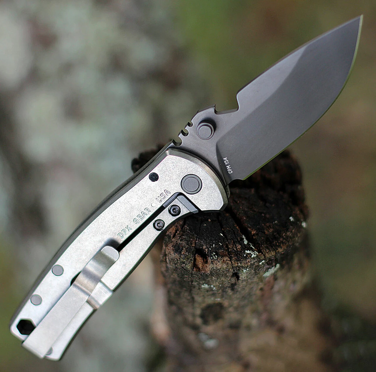 - Patented DPx Gear blade notch doubles as bottle opener and quick open feature. Designed to allow the knife to open faster than an automatic and to deploy the blade to the rear of the holder, keeping it safe from the assailant. This feature was also designed to open bottles and function as a pot lifter. Every feature on a DPx Gear knife is expected to do double duty.