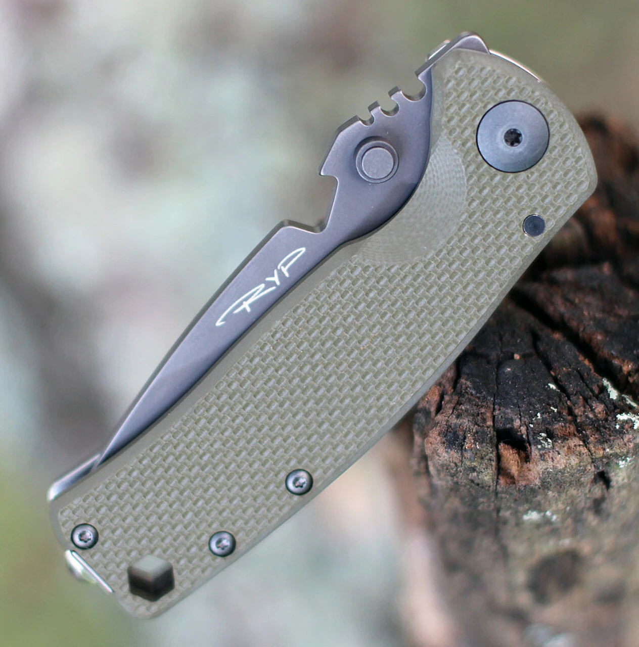 - Handle Material: Lock side is 6Al4v Titanium / Olive Drab G10 Phenolic in rough finish