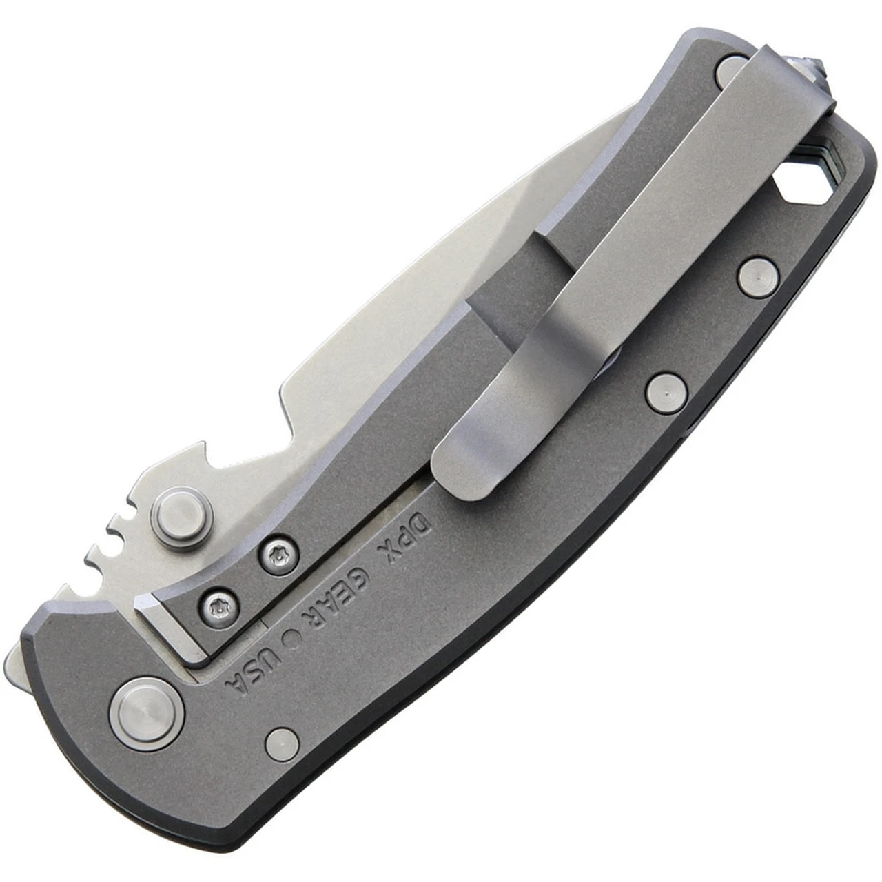 - Patented DPx Gear blade notch doubles as bottle opener and quick open feature. Designed to allow the knife to open faster than an automatic and to deploy the blade to the rear of the holder, keeping it safe from the assailant. This feature was also designed to open bottles and function as a pot lifter. Every feature on a DPx Gear knife is expected to do double duty.