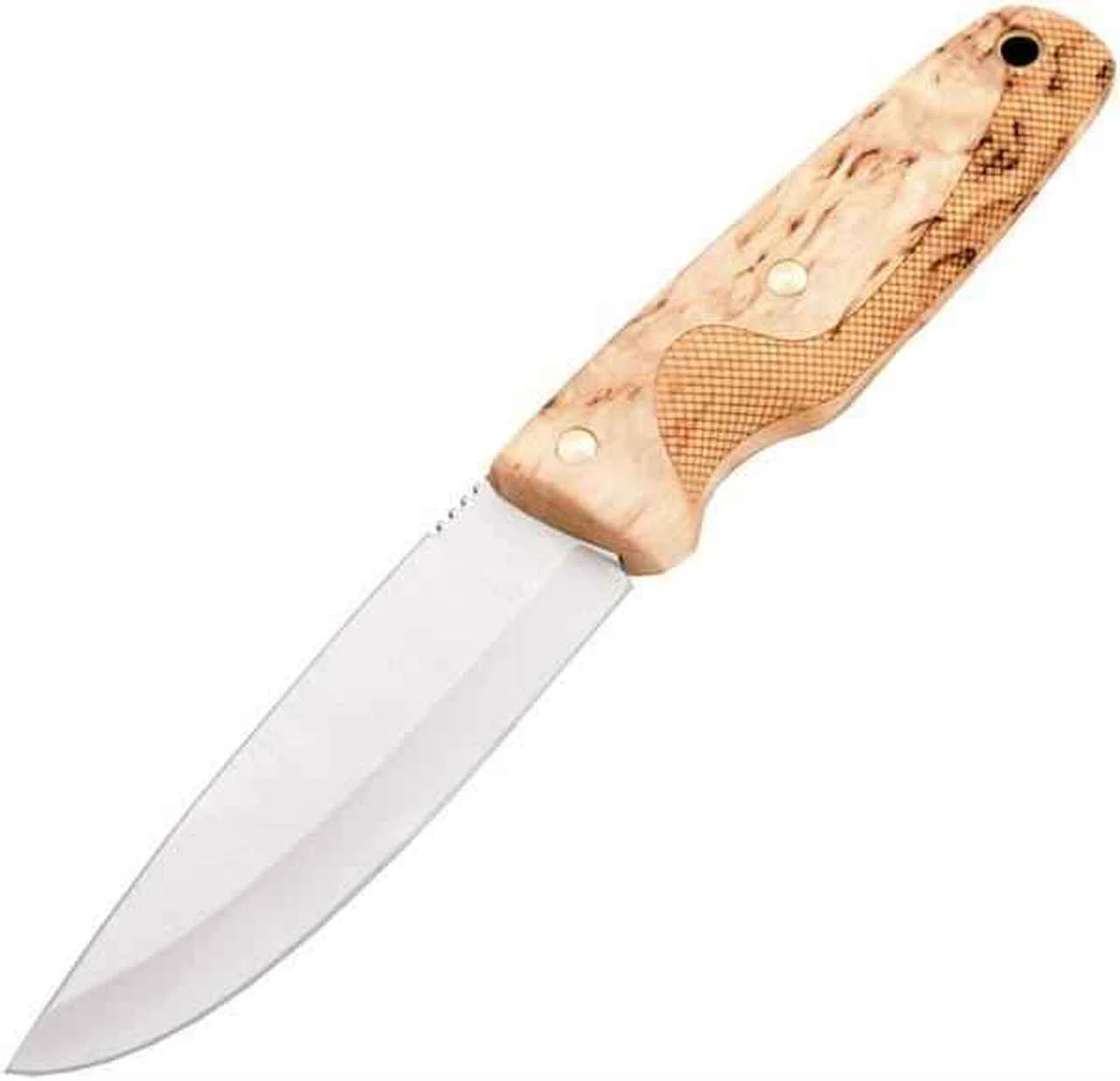 EKA Nordic W11, 4 3/8″ 12C27 Stainless Drop Point Blade, Curly Birch Handle