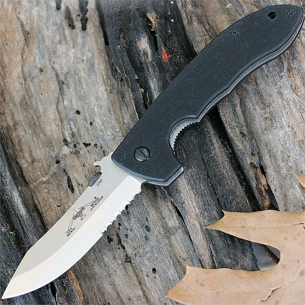 Emerson CQC-8 Wave Linerlock, Combo Stonewash Blade, Black G-10 Handle
