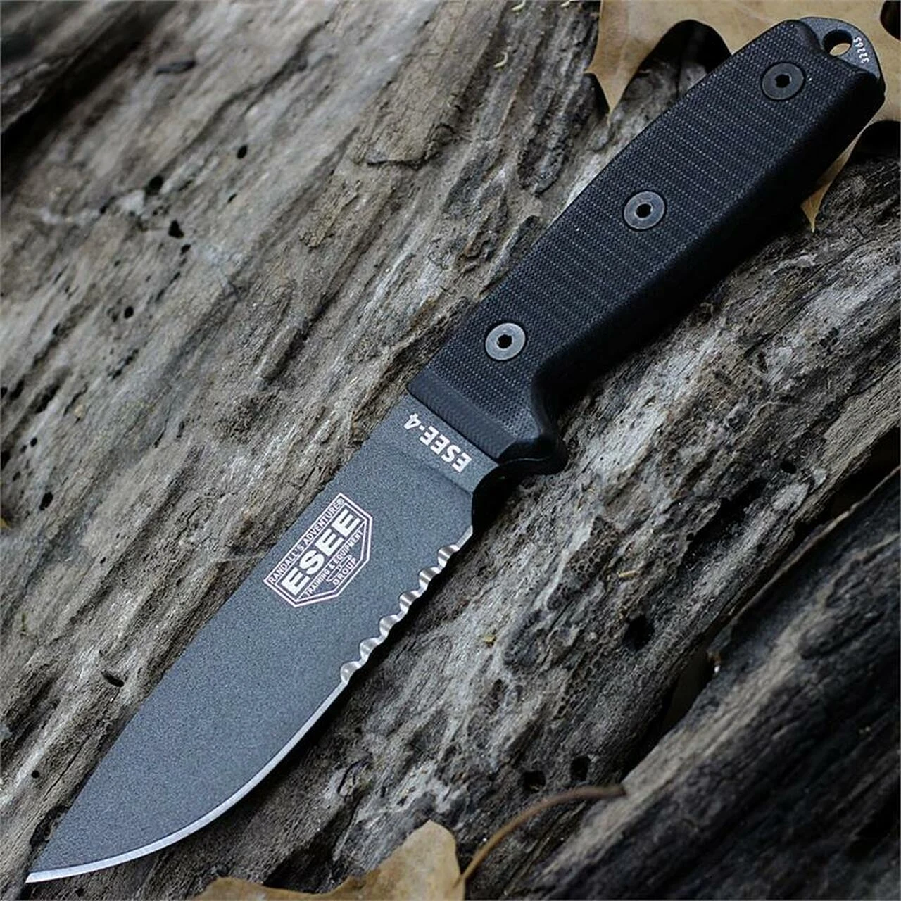 This ESEE Model 4 has a tactical gray blade that measures 4.5″ with a partially serrated edge. The Item 4S-TG-B comes with a Black Molded Sheath and Clip Plate.