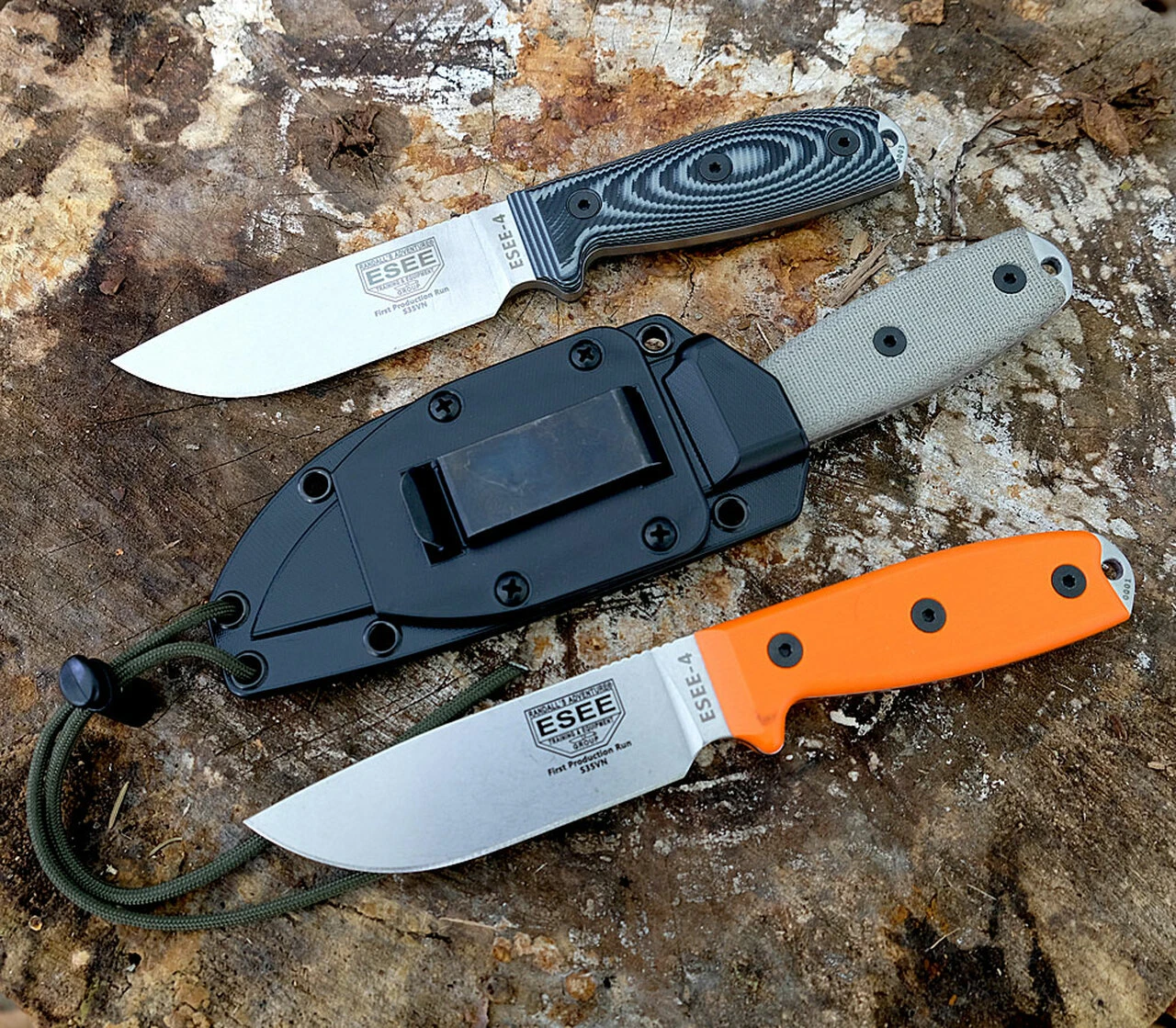 ESEE-4P35V, 4.5″ S35VN Plain Blade, Canvas Micarta Handle, Black Sheath