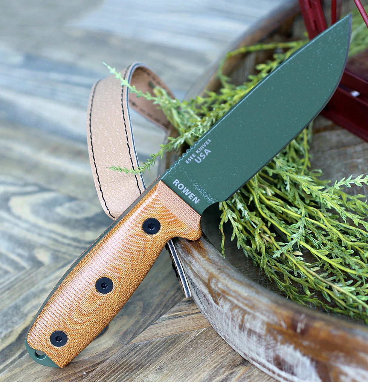 ESEE-4 4POD-011, 4.5″ 1095 Carbon Steel OD Green Plain Blade, Natural Canvas Micarta G10 3D Handle, Black Sheath