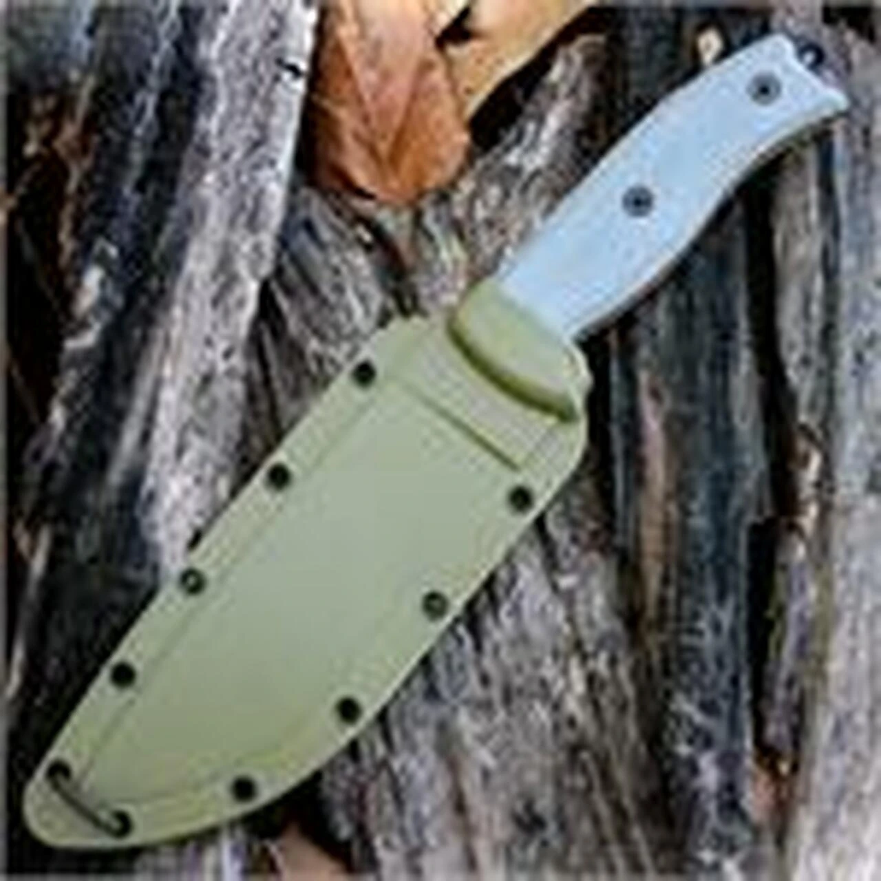 ESEE-6 Plain Edge, Rounded Pommel, Green Sheath w/ Clip Plate