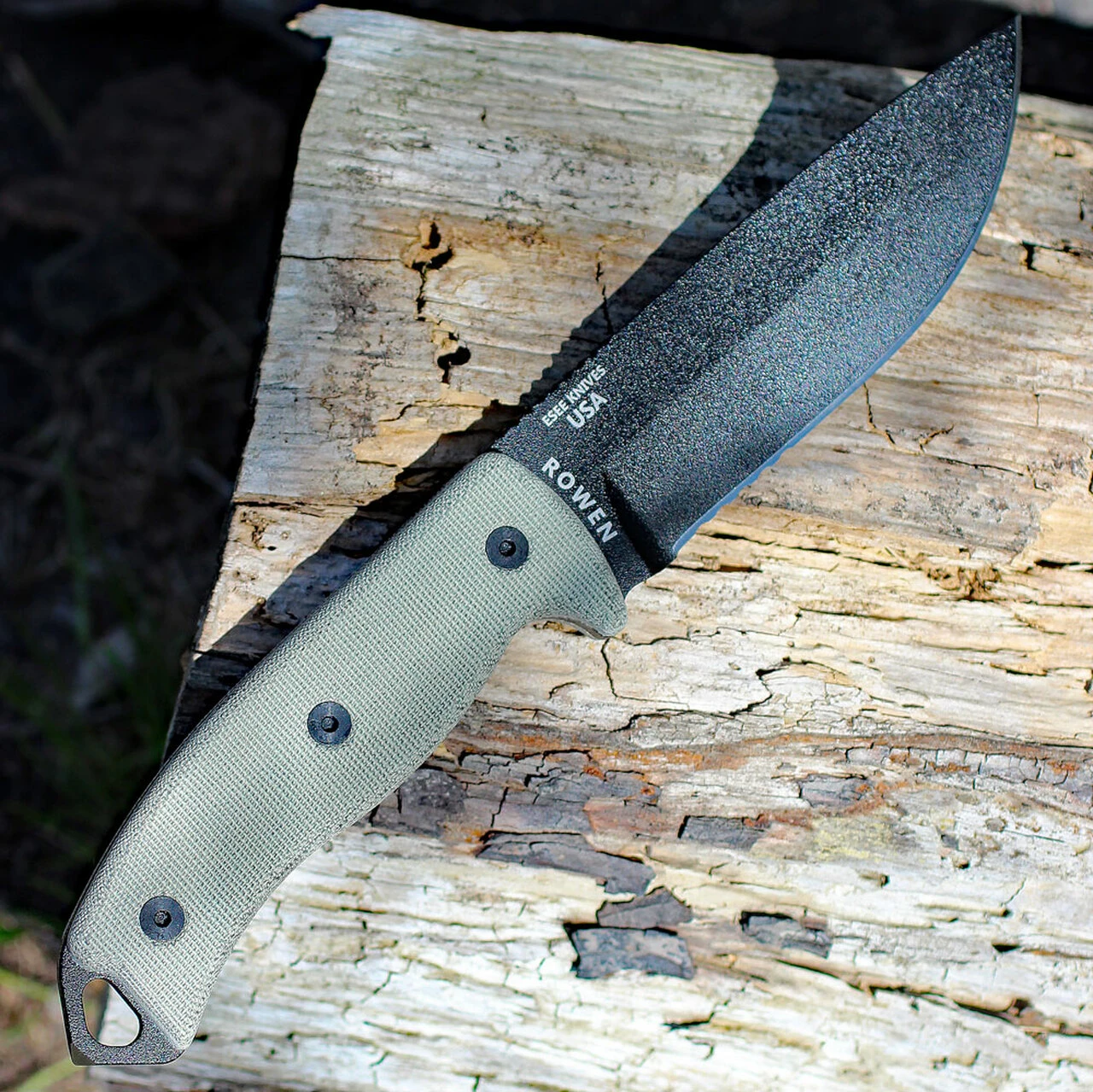 ESEE Knives ESEE Cutlery Model 5, Green Canvas Micarta, Black Blade, Kydex Sheath, Combo Edge