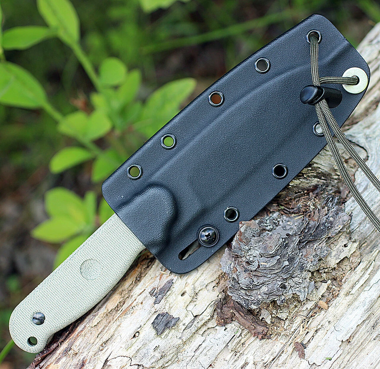 The Laser Strike knife was one of the first knives ever designed by Jeff Randall and Mike Perrin. It has now been re-introduced under the ESEE brand built by Rowen Manufacturing. The unique blade shape is preferred by many folks for doing heavy-duty bushcraft style work. It features removable handles with emergency fire starting tools inside the handle and a bow drill divot. As with other ESEE knives, the Laser Strike is backed with a NO QUESTIONS ASKED WARRANTY lifetime warranty. If youre looking for a survival blade that will serve you well in the woods or for your next deployment anywhere in the world, the Laser Strike may be the answer.