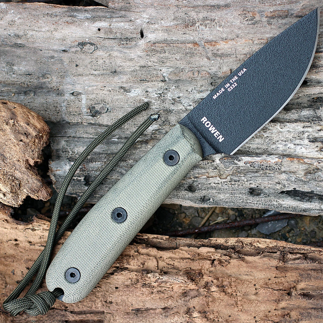 ESEE Model 4, 4HM-B, Black Plain Edge, Modified Canvas Handles, Brown Leather Sheath