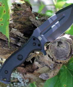 Halfbreed Blades Large Survival LSK-01, 6.89″ K110 Spear Point Blade, Black G-10 Handle