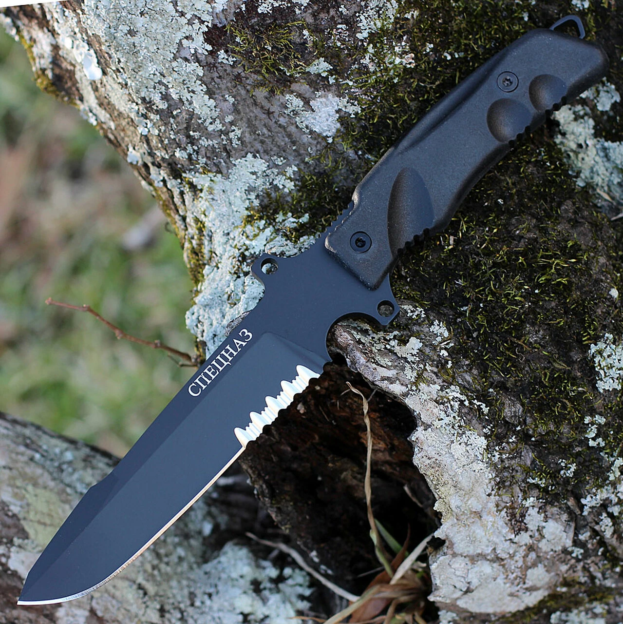 Fox Knives USA Spetsnaz Predator (02FXG4BS) – 6.75″ Bohler N690 Black Partially Serrated Drop Point Blade, Black Forprene Handle