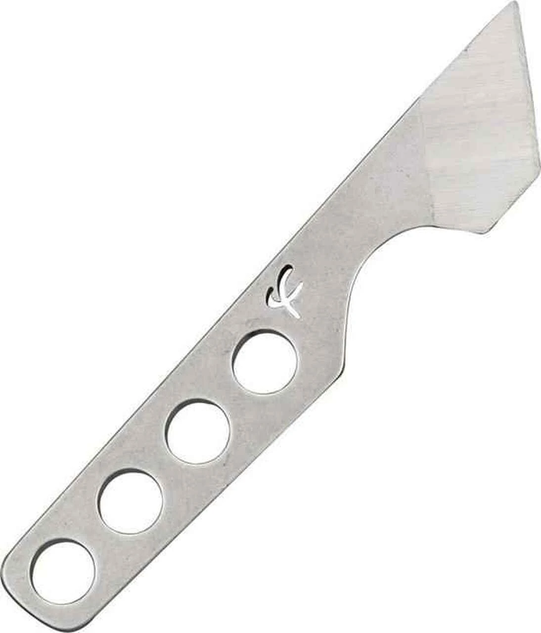 Fred Perrin Le Kiridashi. 3 7/8″ overall neck knife. 1″ blade. One-piece 12C27 stainless construction. Handle has drilled hole designs. Molded black Kydex neck sheath with brown and black cord lanyard. Country of Origin: France