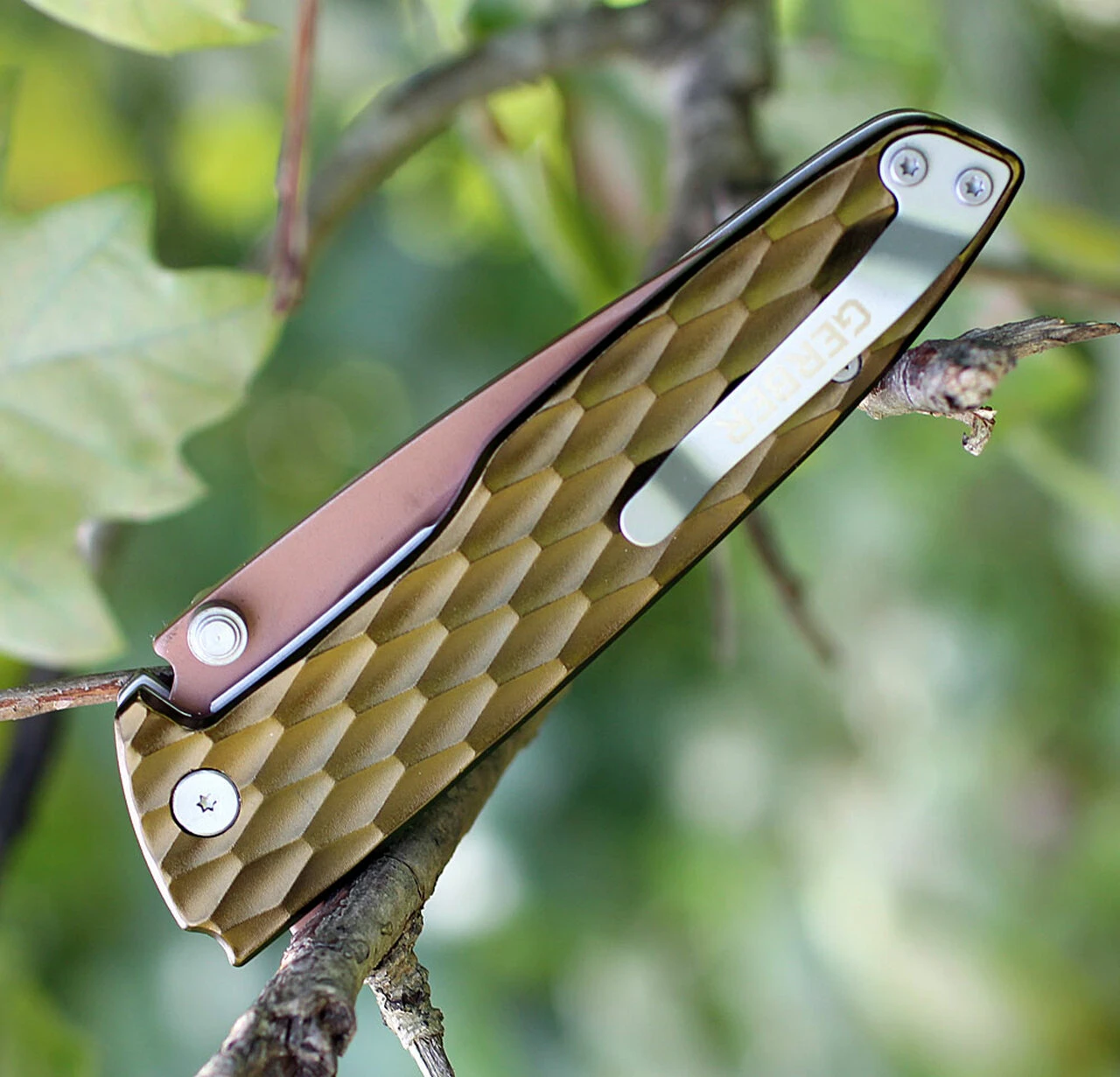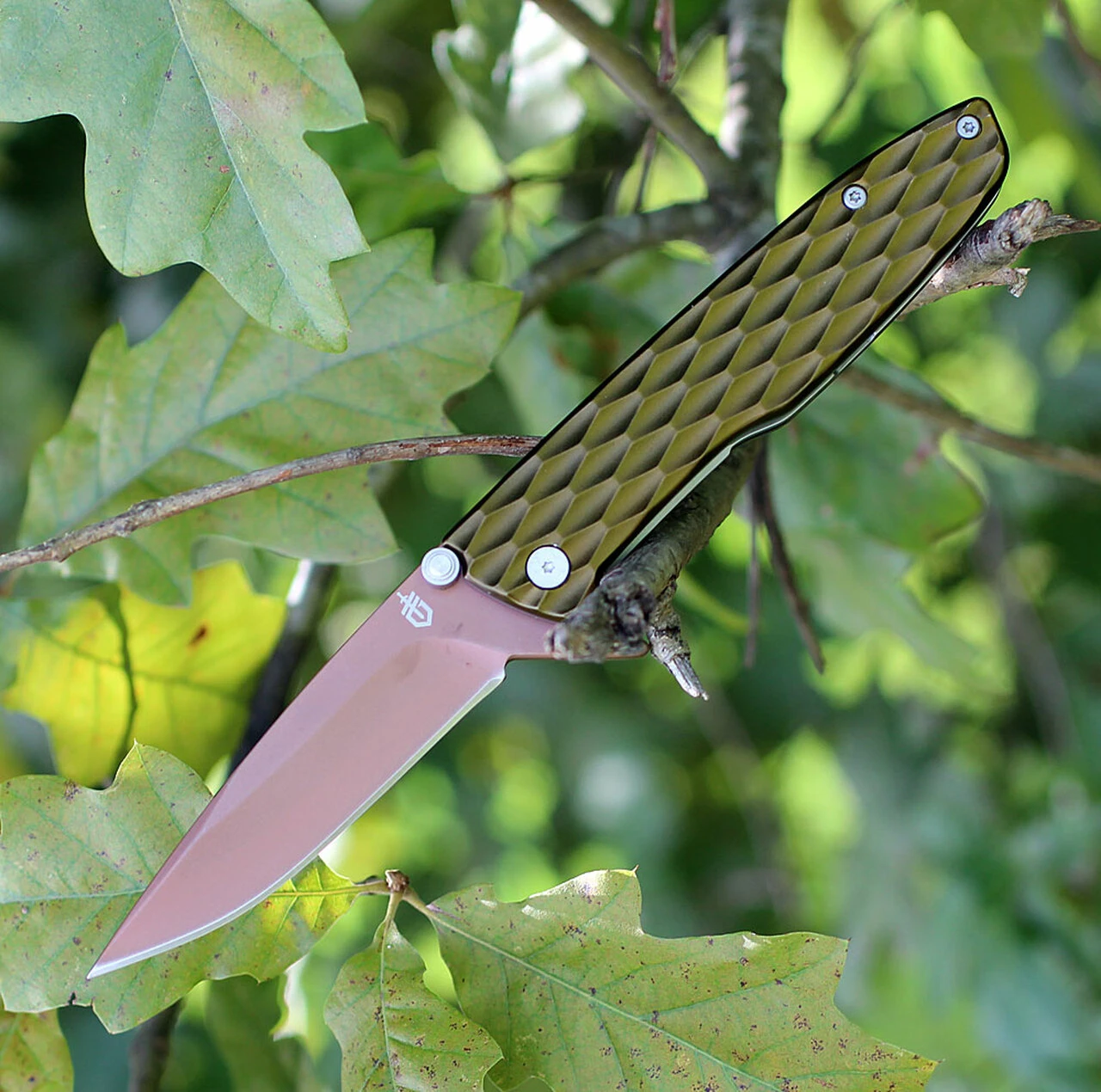 Gerber 30-001353 One-Flip, Rose Gold Blade, Green Aluminum Handle