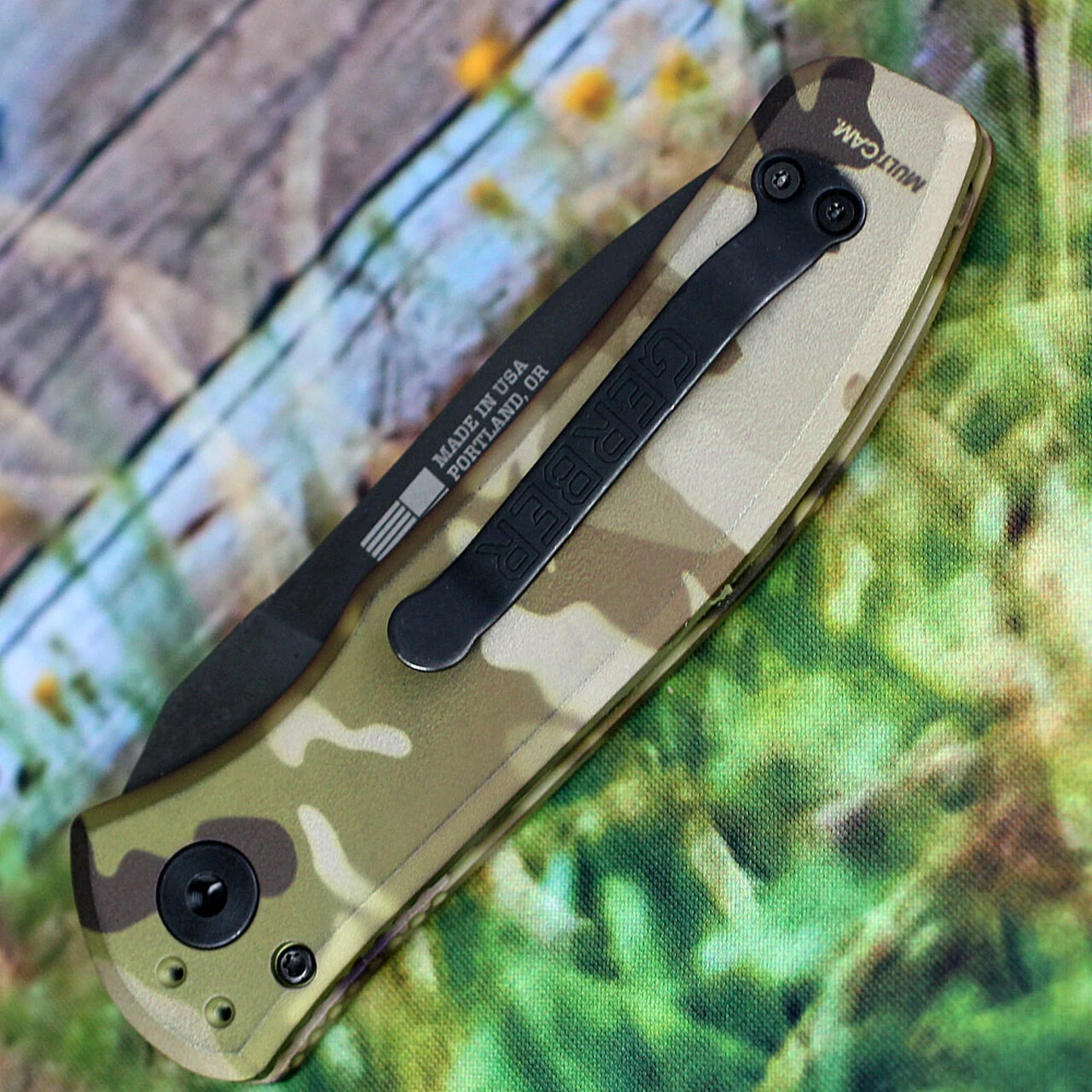 Gerber Empower Auto 30-001621, 3.25″ Black CPM-S30V Plain Blade, Multicam-Arid Aluminum Handle